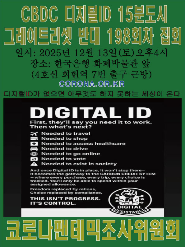 <코로나팬데믹조사위원회, CBDC 15분도시 디지털ID 그레이트 리셋 반대 198회차 시위>